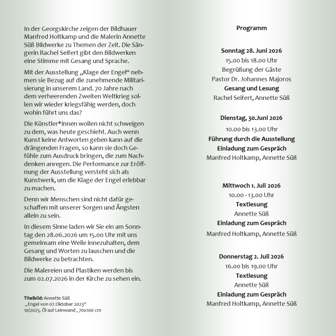 Von der Ausstellung "Schwingungen" aus Juni 2024 finden Sie einen Film und Fotos unter der Rubik Ausstellungen. Dieses filmische Kunstwerk von Juri Beythien bereichert nun meine Seite . Die zur Ausstellung entstandene Musikinstallation von Herwig Schmidt können sie sich ebenfalls dort anhören. Ich wünsche Ihnen viel Freude bei der Entdeckung .